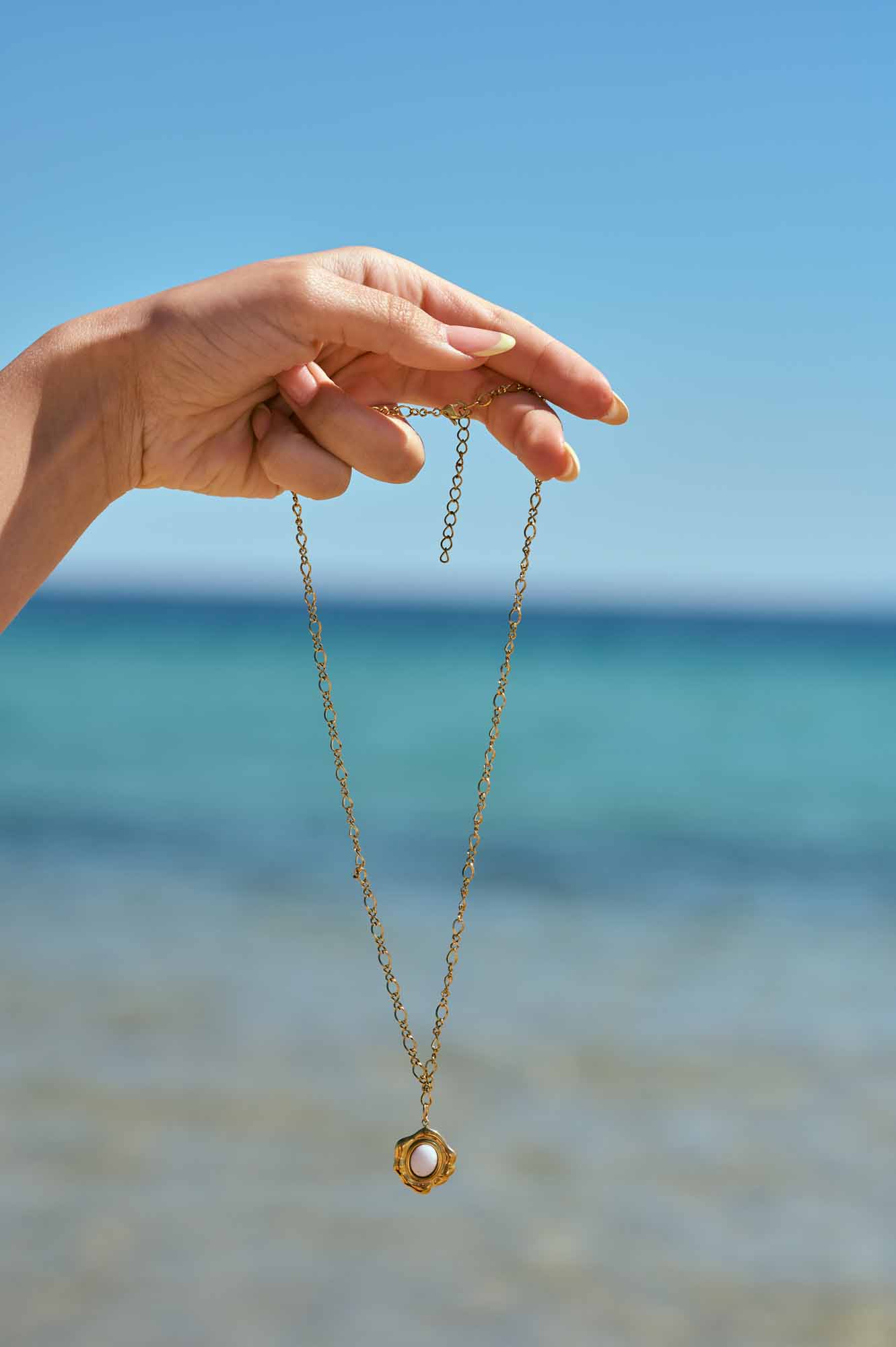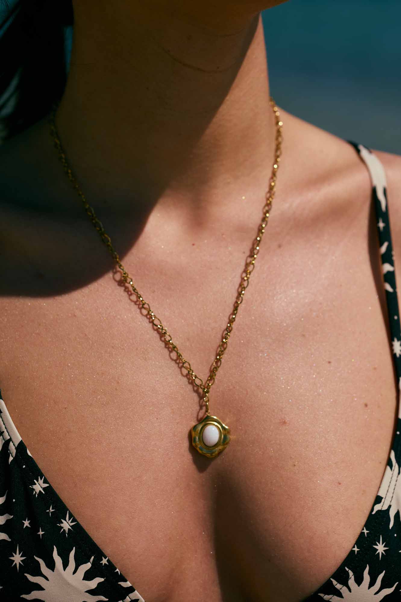 Ατσάλινο κολιέ με στοιχείο με ημιπολύτιμη πέτρα.