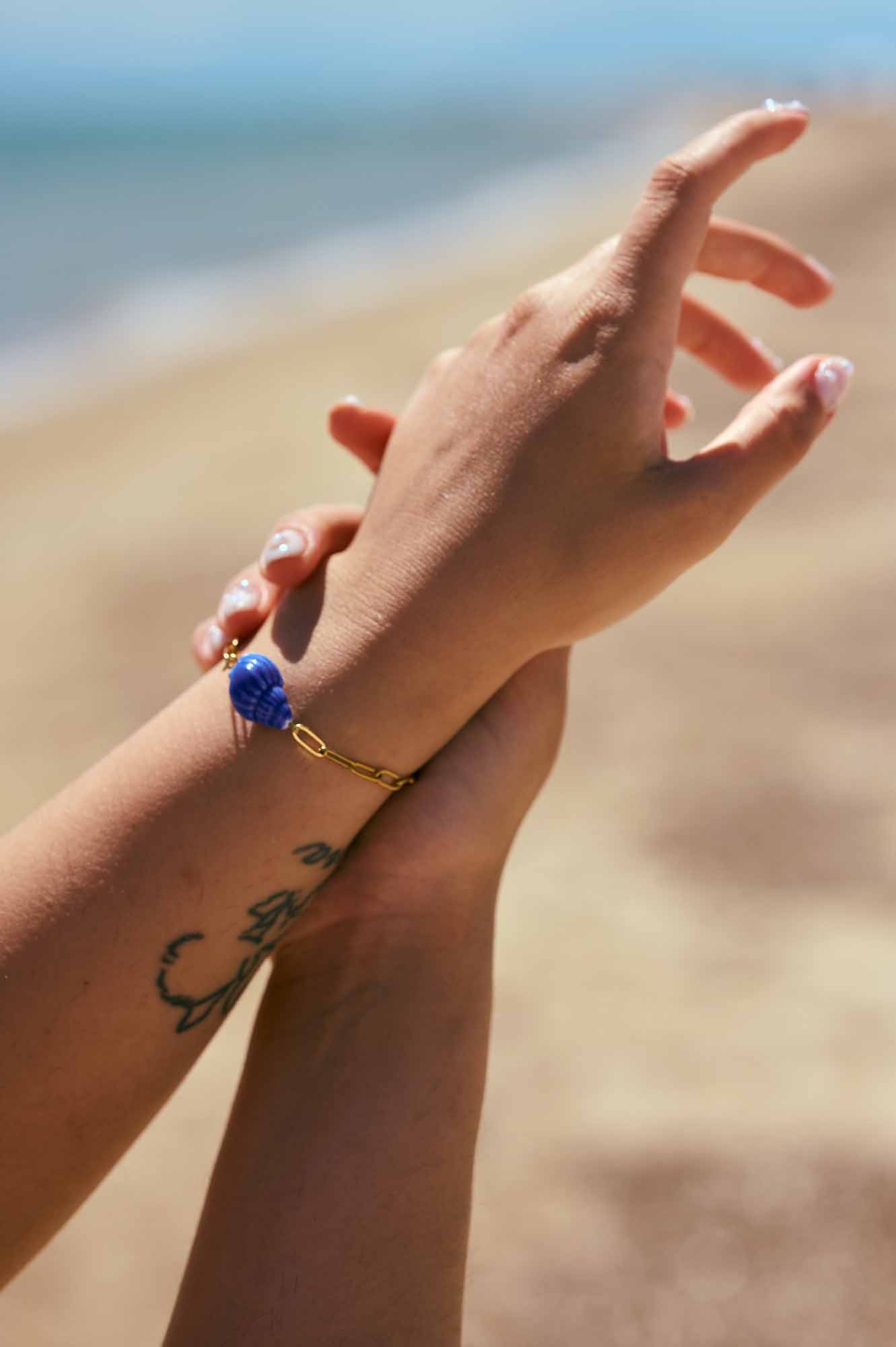 Ατσάλινο βραχιόλι με πορσελάνινο κοχύλι.