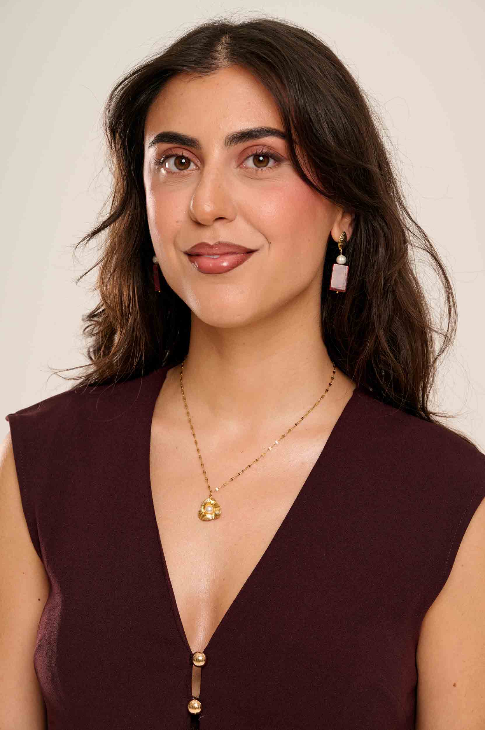 Το κολιέ Elan σχεδιάστηκε για το κορίτσι που αγαπά την “quiet luxury” αισθητική και θέλει ένα edgy αλλά ταυτόχρονα chic κόσμημα για να αναδείξει τον χαρακτήρα της. Η επίχρυση ατσάλινη αλυσίδα δίνει ένα modern twist, ενώ το τριγωνικό γεωμετρικό στοιχείο με το διακριτικό περλάκι δημιουργεί το απόλυτο statement.