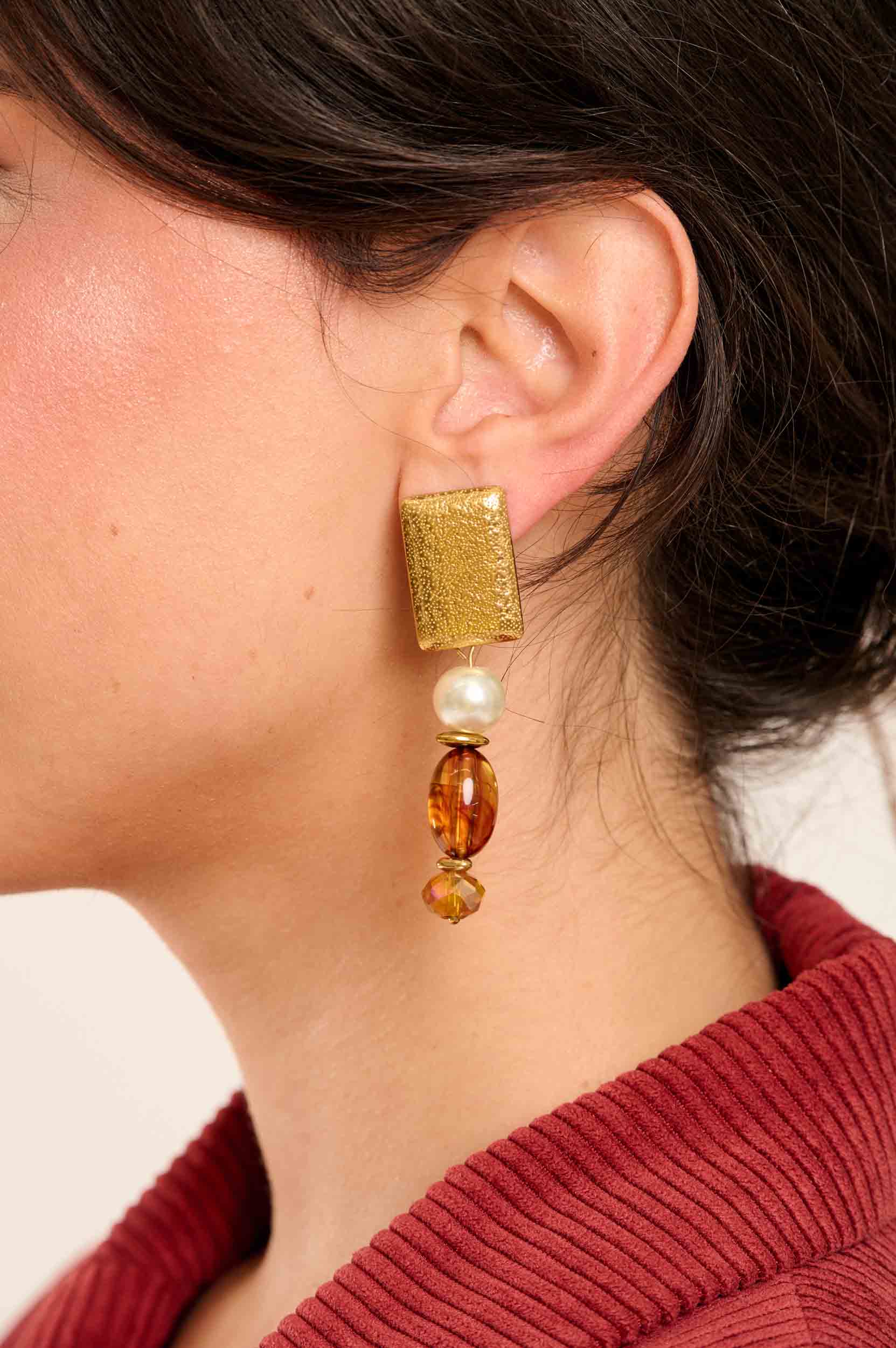 Τα σκουλαρίκια Ethereal είναι αυτό το κομμάτι που θα φοράς από το πρωί στο γραφείο μέχρι τη βραδινή σου έξοδο χωρίς δεύτερη σκέψη. Η ορθογώνια βάση τους δίνει έναν modern χαρακτήρα, ενώ η πέρλα, οι αιματίτες και η ακρυλική χάντρα προσθέτουν αυτή τη λεπτομέρεια που τα κάνει να ξεχωρίζουν. Είναι υποαλλεργικά και φτιαγμένα από ανοξείδωτο ατσάλι για να μην σε απασχολεί καθόλου η φθορά τους.