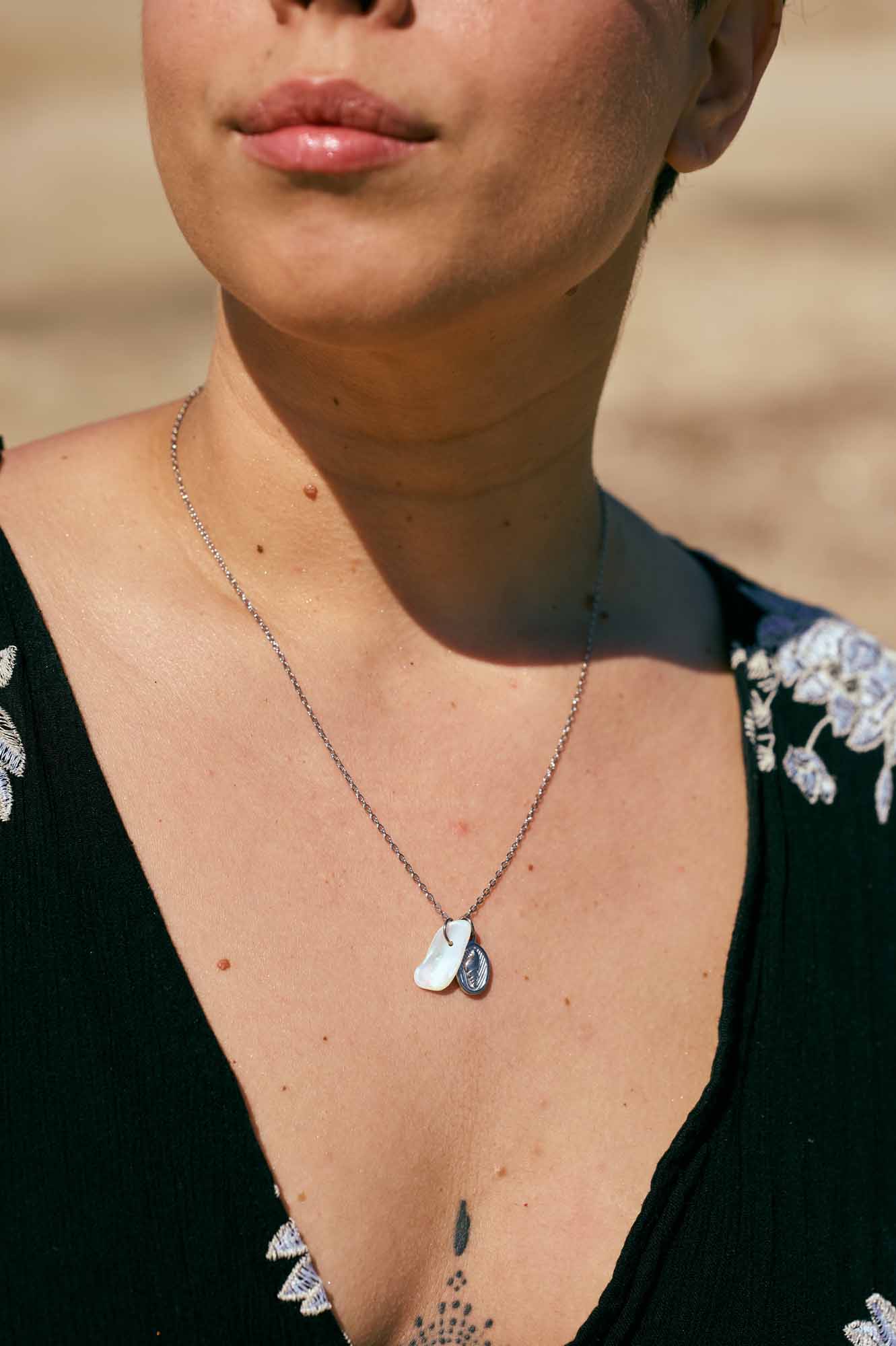Ατσάλινο κολιέ με στοιχεία από κοχύλι.