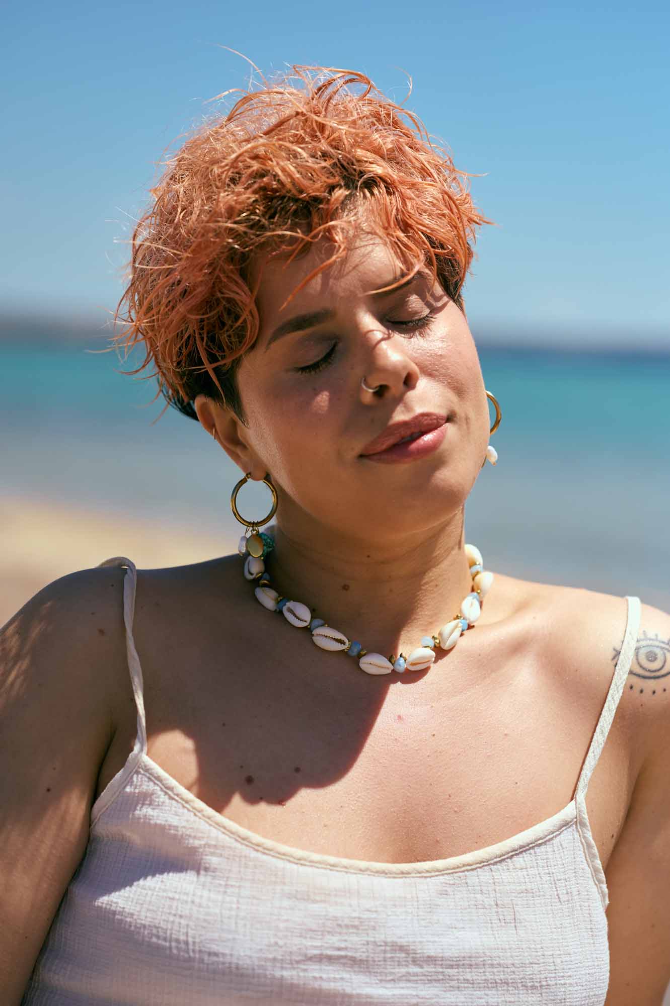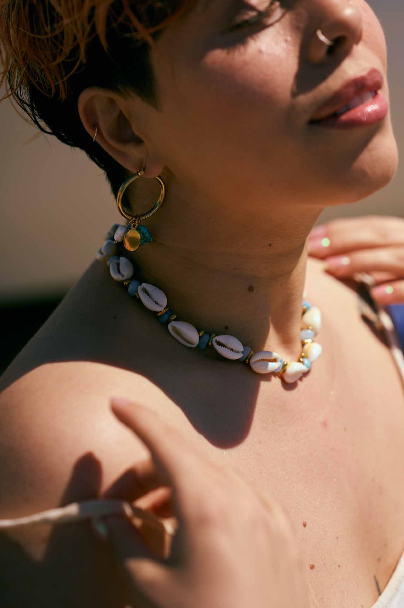 Κολιέ με κοχύλια, τσιπς και αιματήτες.