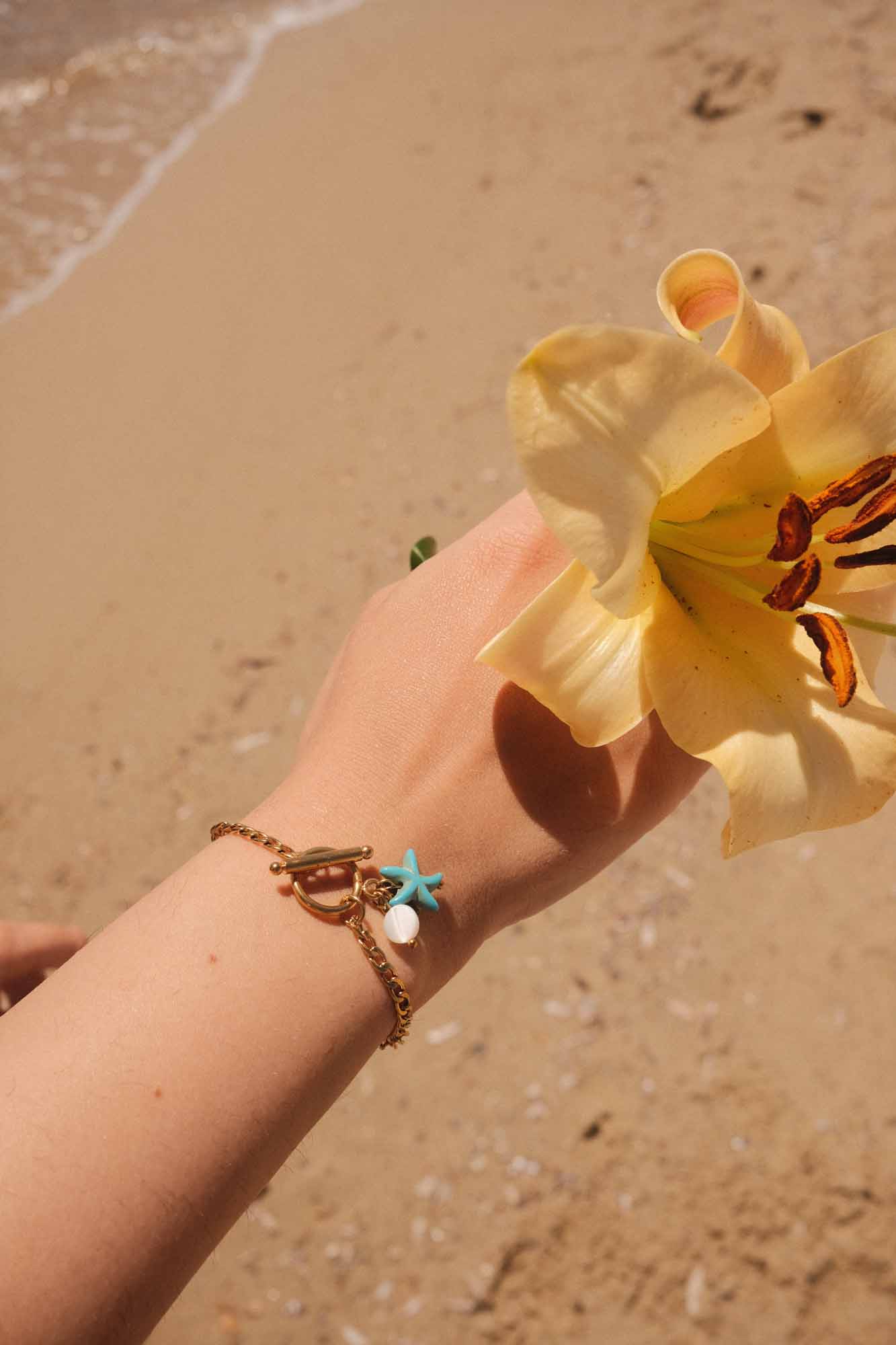 Βραχιόλι με μπροστινό κούμπωμα και διάφορα στοιχεία.