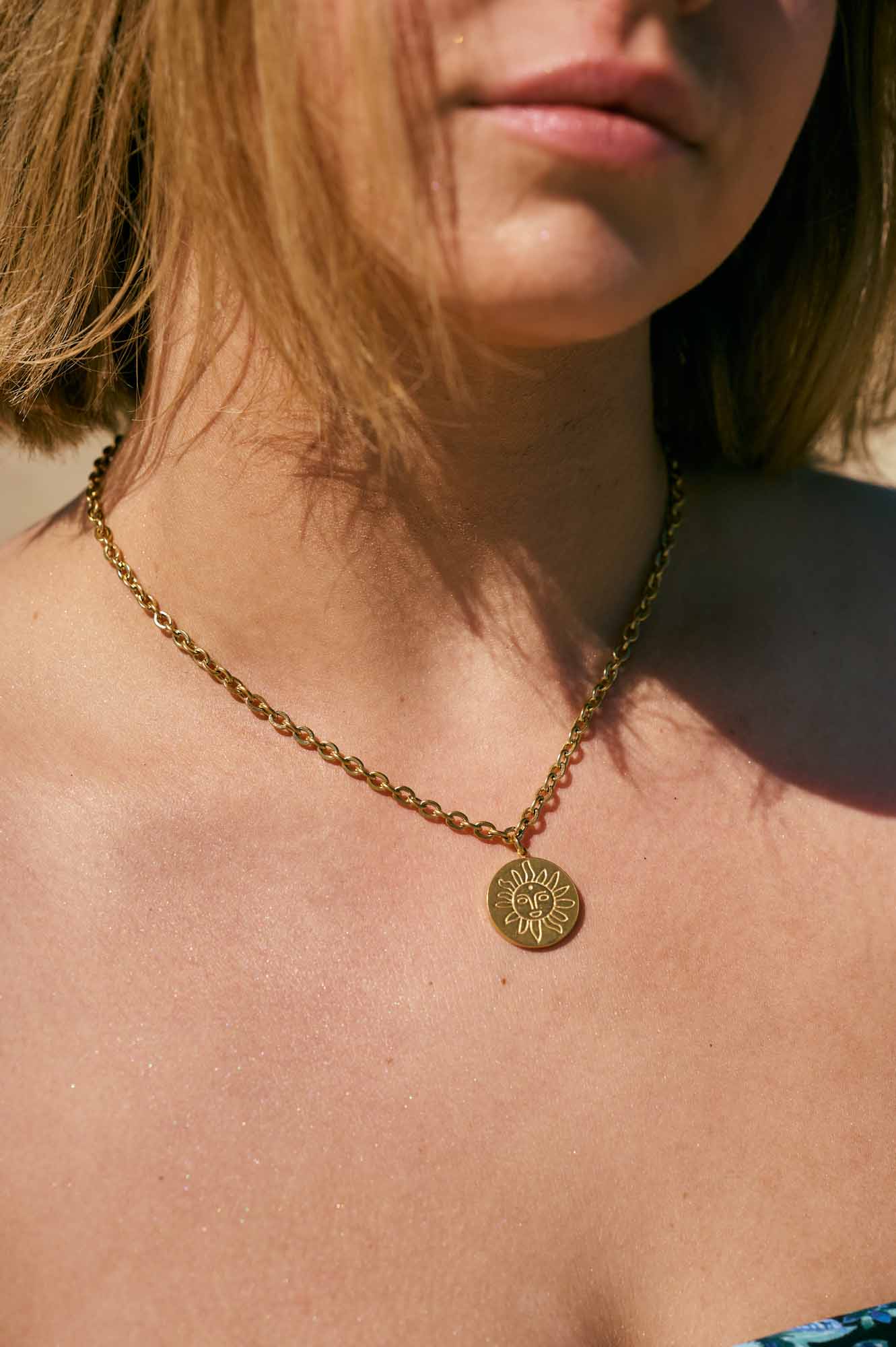 Ατσάλινο κολιέ με στοιχείο σε σχέδιο ήλιου.